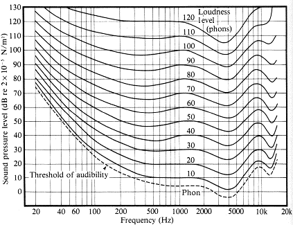 The ear is a non-linear device, so does not respond equally across its hearing range. This is what the Fletcher-Munson Equal-Loudness Contours tells us. One of the main characteristics of this is that when a signal is generated at a specific intensity (sound pressure level – SPL), the perceived volume is dependent on the frequency. Our ears are more sensitive to mid-band sounds than low or high frequencies.